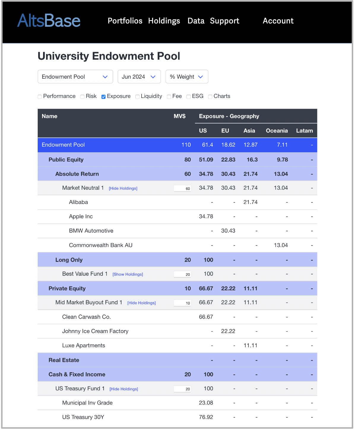 Customizable tagging and attribution of holdings to enable normalization of assets across private and public investments.